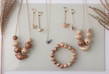 Rankų darbo papuošalai ir indai yra išskirtiniai ir vienetiniai. Tai lemia kiekvienos detalės, burbuliuko ar indo švelnūs pirštų prisilietimai, kruopščiai parinktos spalvos ir atspalviai, faktūrų įvairovė. Keramika – lėtas ir kantrybės reikalaujantis procesas, o rezultatas gali būti nepakartojamas. Visuose jų darbuose vyrauja paprastumas, subtilus grožis ir praktiškumas.